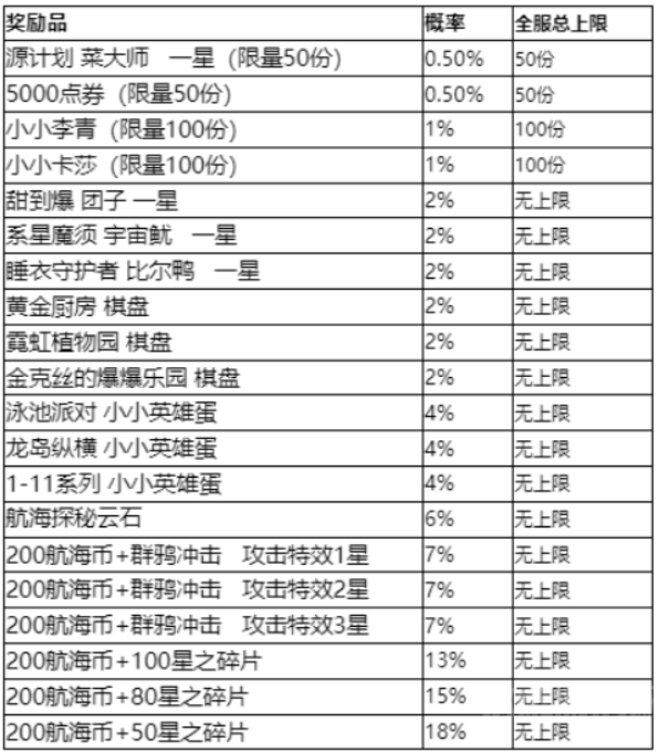 当用户得到非“航海币加上星的碎片”组合类型奖励后,将可在当前奖励或者“200航海币加50颗星的碎片”中选一个领取。